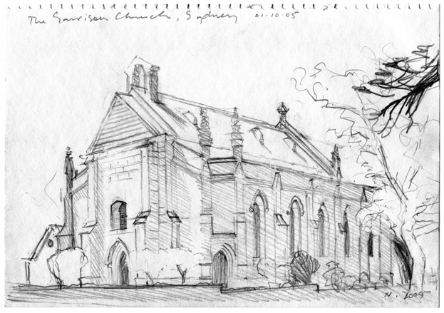 The Garrison Church: sketch by Peter Neilson on the 150th anniversary of the eight hour day in Sydney
