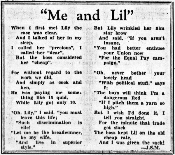 Then in September 2006 at a Labour History conference in Brisbane I heard Doug Eaton sing a selection of songs written by John Manifold including Me and Lil. He then sent me the clipping of it from 'Our Women' March-May 1962