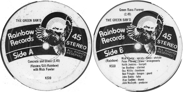 This song was released as side 2 of a 45rpm 7" record in 1979 With Mick Fowler on vocals and a jazz band called Green Ban'd. Mick was a jazz musician and member of the SUA (Seamen's Union of Australia) who lived in Victoria Street Sydney. He was the last tenant to leave in 1979.